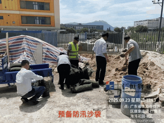 布置防汛沙袋、加固公区玻璃、关闭出入口道闸电源、清掏排水沟淤泥……将隐患逐一排查,将风险提前阻断。
