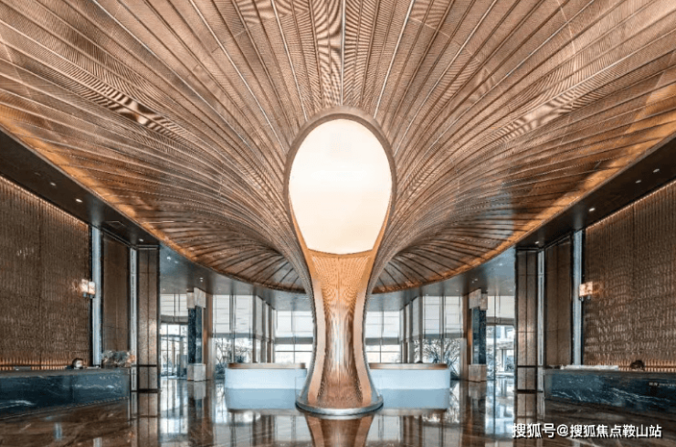大堂的生命之树,是耗时1000小时雕刻拼接的,象征着永不凋谢的生命力,寓意家族基业长青。