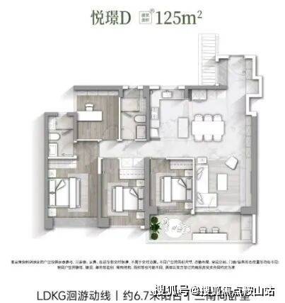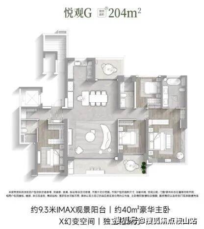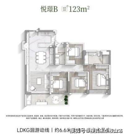 一期推出的户型面积从123㎡到204㎡不等,所有户型均为南北朝向,主打刚改客群。例如,建筑面积约为123㎡的悦璟B户型,采用了LDKG一体化设计,配备6.6米双面宽阳台,最大化景观视野。二期则推出了108-124㎡的全南向纯四房户型,主卧采用了全新的研发成果——天空之境,即270°U型无遮挡柱的全画幅飘窗,提供沉浸式的观景体验。