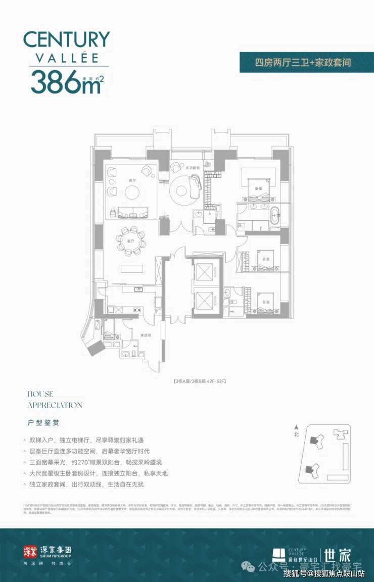 建面约386㎡ 四房两厅三卫+家政套间