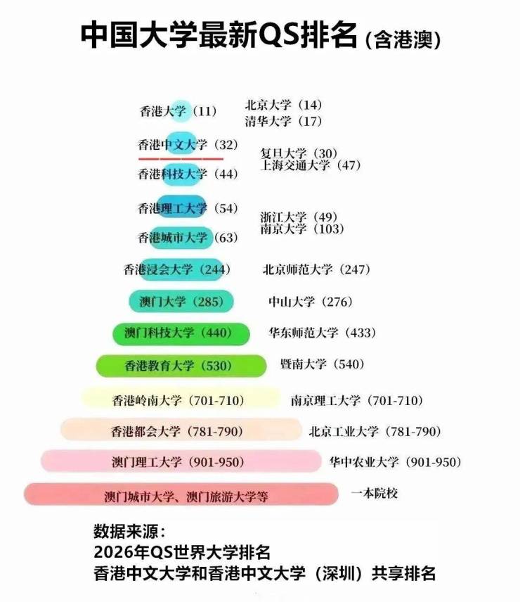 在最新的QS世界大学排名中,香港中文大学位居全球第32名,仅次于港大、清北和复旦。