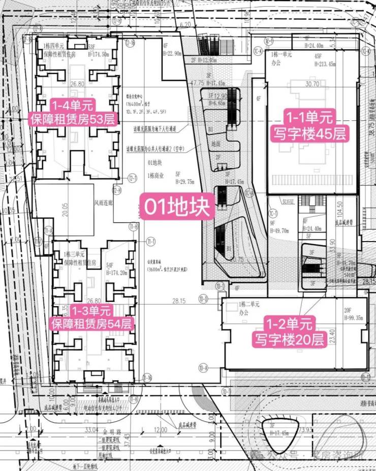 (一期)01地块:总建面约32万平方米,其中住宅约9.2万平方米,商业约3.3万平方米,办公约5.9万平方米,综合文化中心约1.6万平方米平。