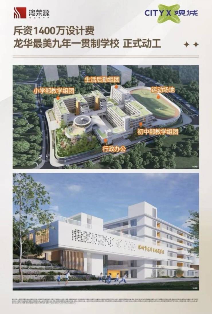 除此外项目本身还规划了有两所➕旁边一所共3所九年一贯制学校,正常鸿荣源大盘引进的学校都不会差,像宝安鸿荣源珈誉府也是百万大盘两所学校引进的都是四大名校深圳外国语,龙华壹成中心也是百万大盘引进的是龙华第二实验➕创新实验学校