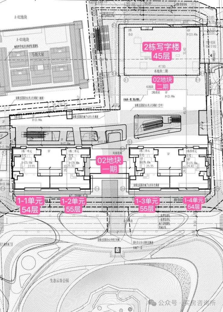 (一期)02地块(二期):总建面约6.7万平方米,其中办公建面约5.25万平方米,商业建面9900平方米。