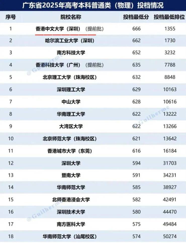 在广东省,港中深也已经连续十年,成为全省录取分数线最高的大学。