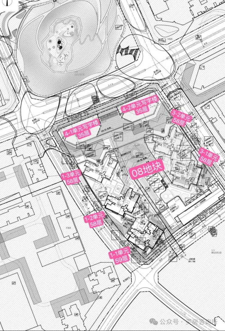 此地块总建面约22.5万平方米,其中住宅约9.6万平方米。