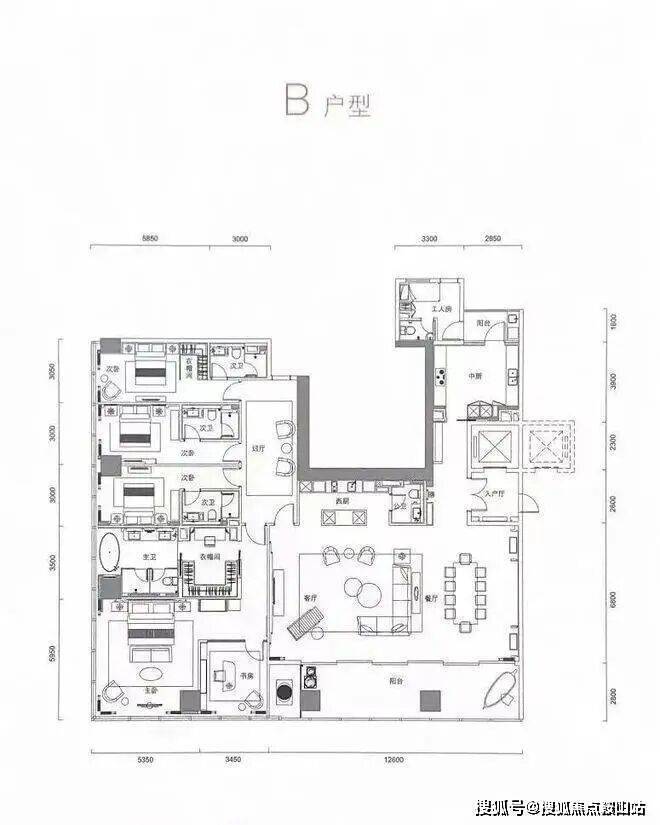 A户型 304.3㎡ (套内约350㎡),框架结构,只在边缘有承重柱,这种结构的房子感觉会非常的大气。总的来说这个305平方的大平层适合任何群体的家庭居住,无论你是二胎,三胎还是三代同堂,都可以完全你们的居住,关键是不限购,不限贷!