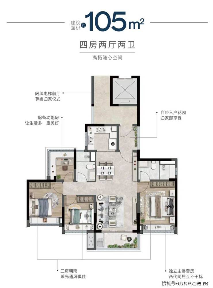 振业天成2.0容积率,领先广州94%的楼盘;精心打造建面约105-165㎡天赋型低密藏品,南北通透,私密单边。