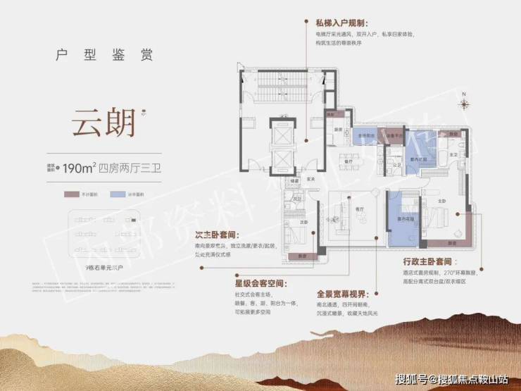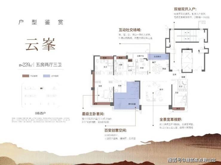 建筑面积约239㎡五房两厅三卫,全景宽幕视野,纵目天际韵卷云舒。