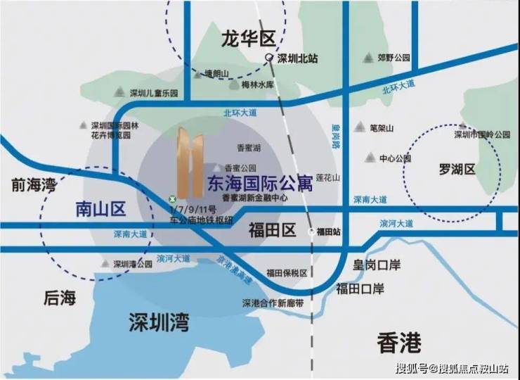 1、7、9、11号线车公庙站地铁枢纽,福田高铁站14分钟快速通勤香港;