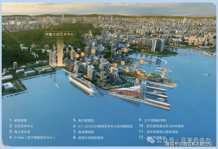 蛇口联动前海、深圳湾,构成三大千亿级经济中心格局。蛇口国际海洋城战略,太子湾作为主要承载区,对标美国哈德逊城市广场,约170万㎡滨海都会区大器已成