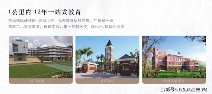 1公里内环绕了四所学校,两所公立学校(珠峰实验学校和斗门实验二小),两所私立(容闳学校和容闳幼儿园)容闳学校是整个珠海市最好的私立贵族学校,目前只有三个校区,项目周边1km打造了从幼儿园到中学一站式的教育体系