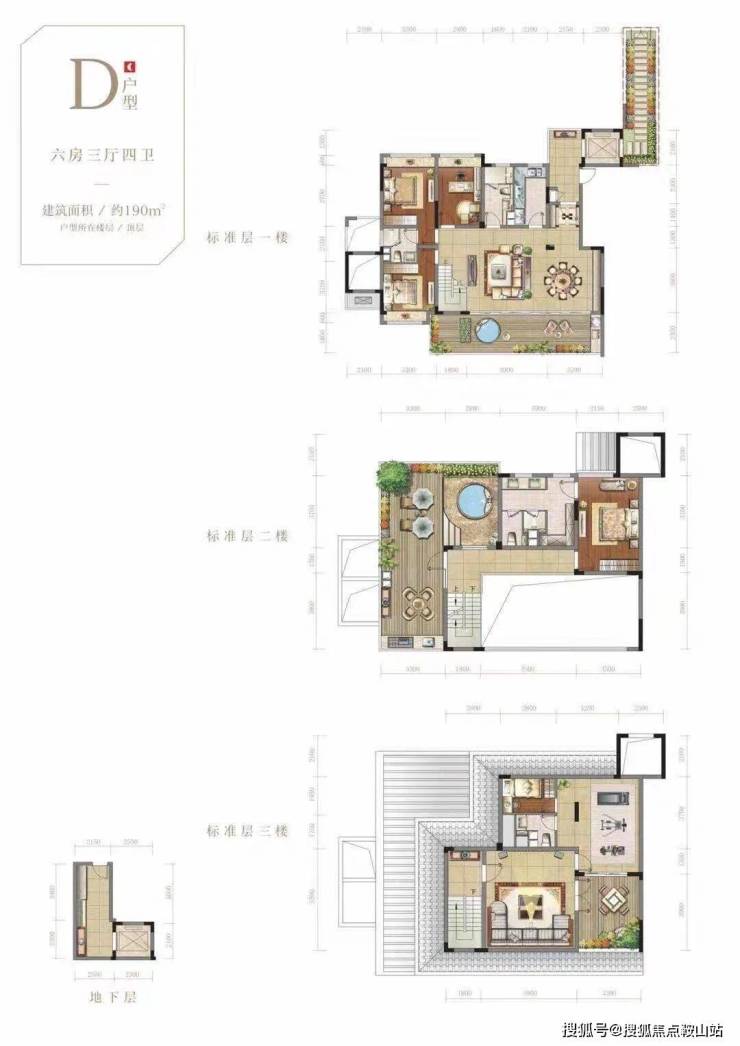 D户型:位于每一栋洋房的5层、6层、阁楼建筑面积190,实际使用面积达到了373平米,花园送了25平米、地下室送了10平米,送两个车位。咱们每一户都送花园送地下室(地下室装修好层高3米5有一个保姆房、一个卫生间、一个客厅、新风系统)送车位,温泉是直接入户的、一户一个电梯,电梯直接入户的,电梯是要人脸识别系统进入的。2020年年底交房。