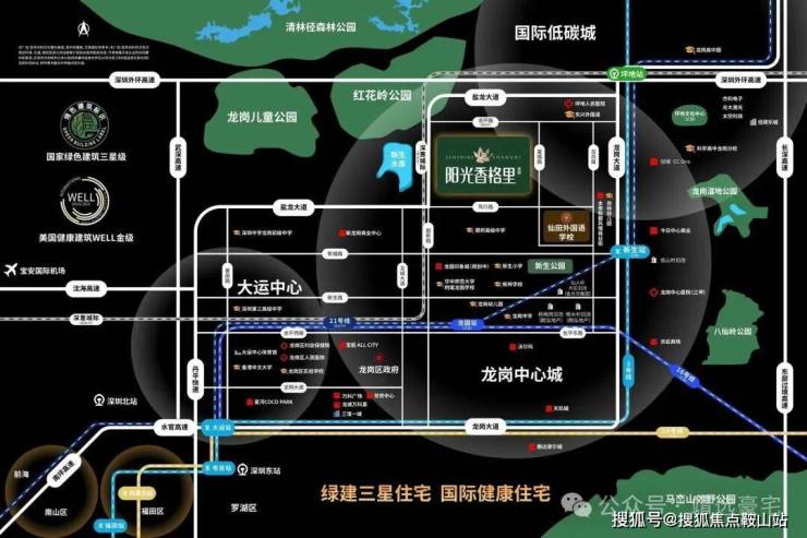 占位双城核心,进则龙岗中心城商务繁华都市,退则高美生态国际低碳城。