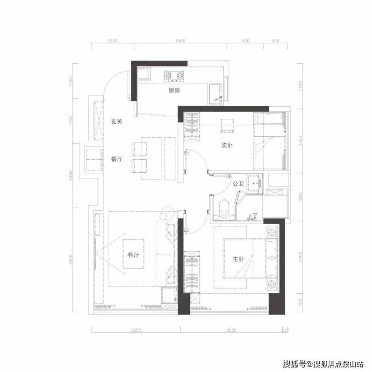 ◆约3.35m客厅面宽,约8m进深,客餐厅一体式,空间动线流畅舒适