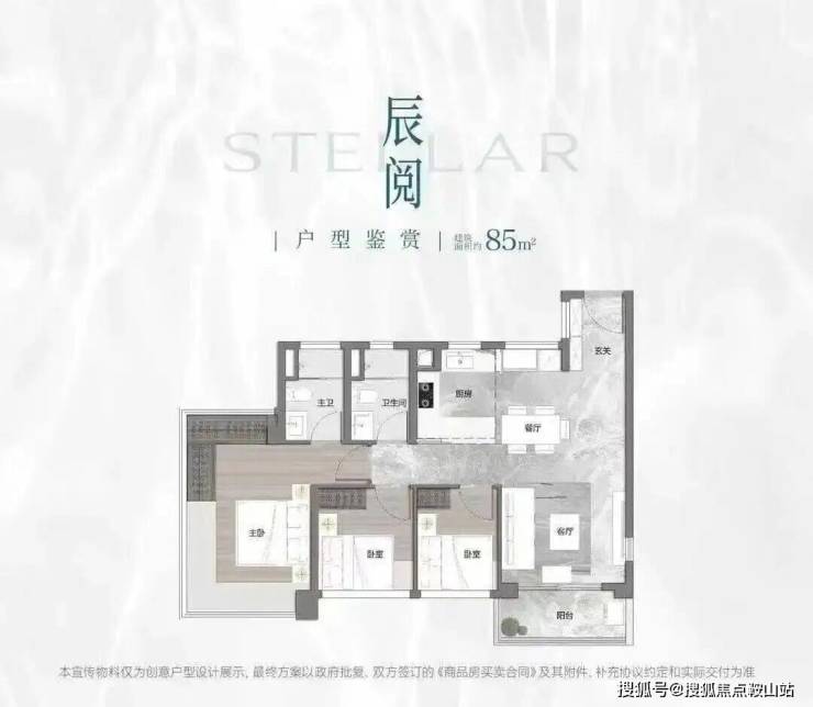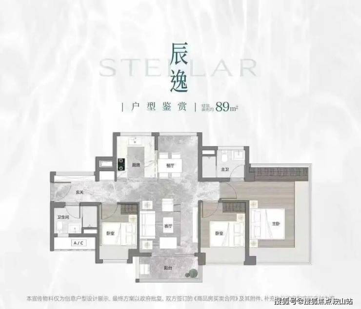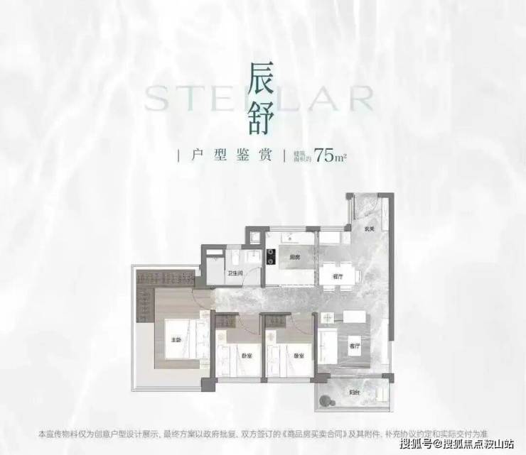 项目首推户型为建面约73-88㎡三房,住宅全南向布局,板楼可南向一线望映辰湖。