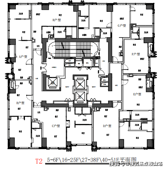 【户型面积】:195-280-320-420平小面积:建面约40-70m2(T1:5-39楼)
