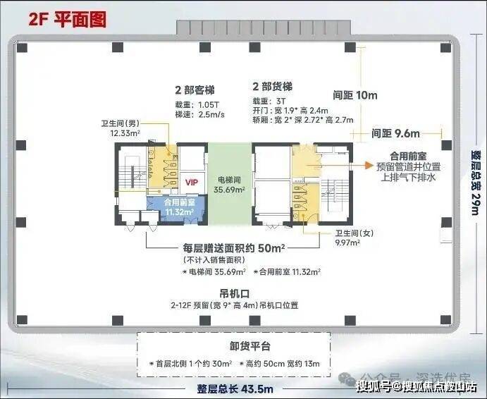 【卸货平台】:首层配备1个卸货平台约30㎡,快捷上下货