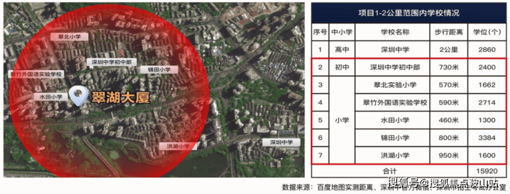 【碧桂园翠湖大厦】处于深圳教育配套最密集的区域之一,7所罗湖老牌中小学环绕,距深圳中学初中部直线距离约300米。