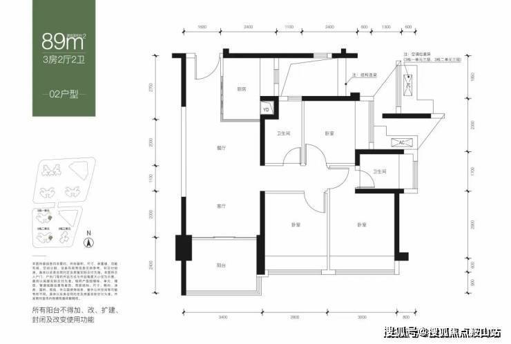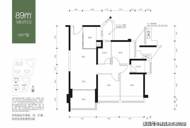 89-90㎡3房2卫490-600单价:4.5-5.2万
