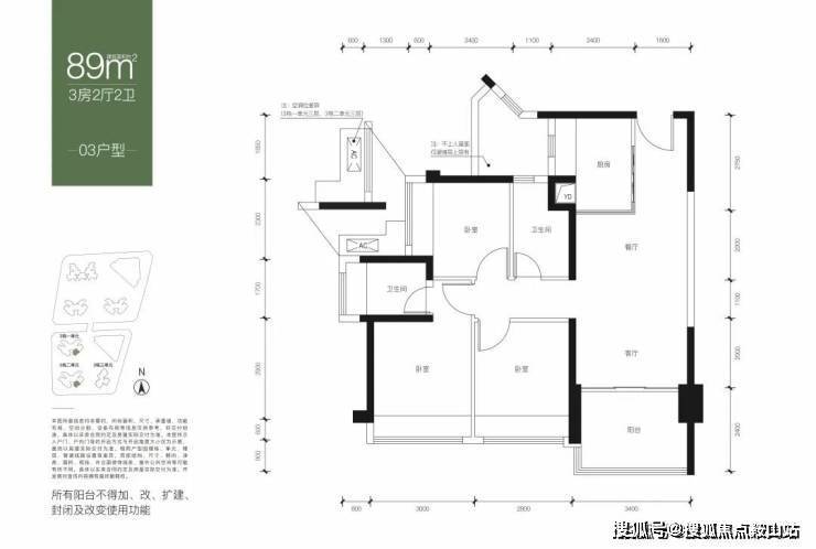 🔻面积:82㎡3房1卫,89-90㎡3房2卫。109-120㎡4房2卫