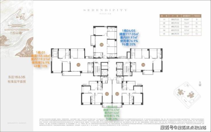面积:111-174㎡4-5房