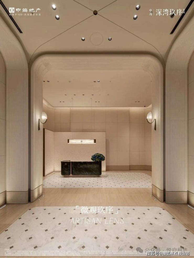 中海深湾玖序(公区)展示:电梯间的交标,全石材