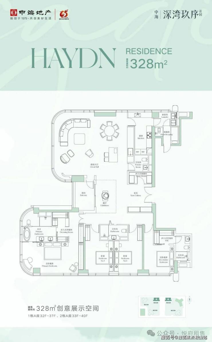 约328平(四房两厅五卫 / 双套房设计+独立保姆间)