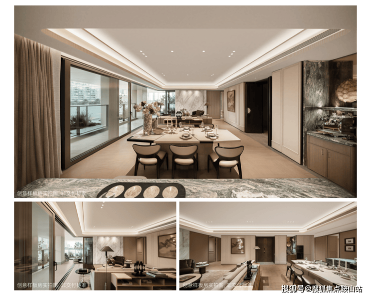 197㎡户型:三面采光,48㎡客厅+22㎡景观阳台,主卧270°转角窗;