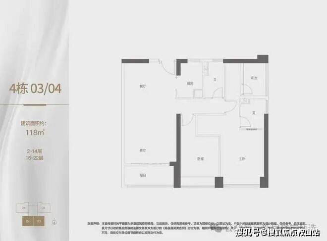 【梯户比】3栋三梯两户;4栋低区三梯四户,高区三梯三户
