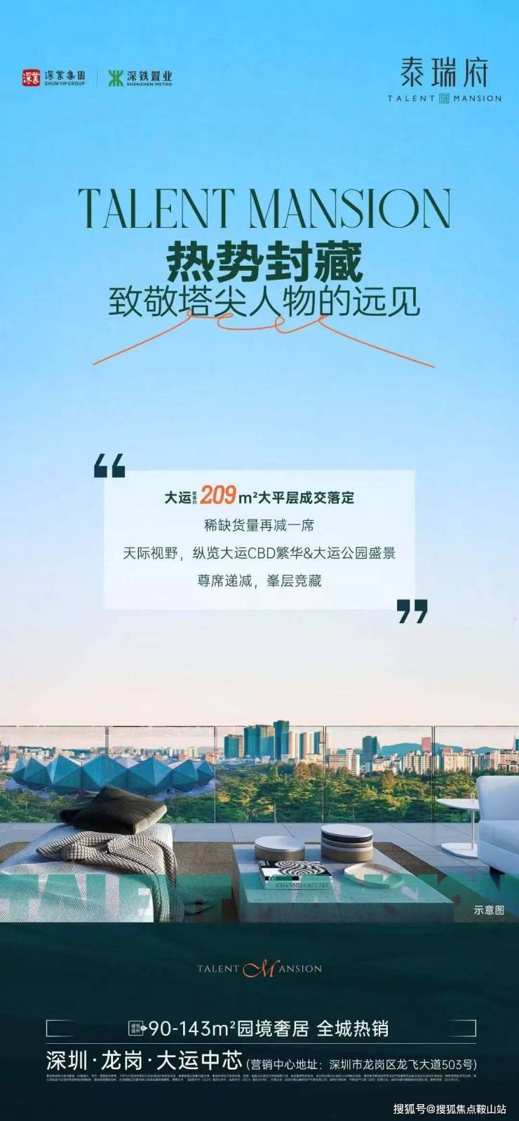 【深业泰瑞府】位于龙岗区大运新城龙飞大道与如意路交界处,紧挨着佳兆业未来城,一路之隔是世贸深港国际中心,将打造36万㎡的高端商业中心,周边有深惠城际及16号地铁线“龙城公园站”距离约500米。