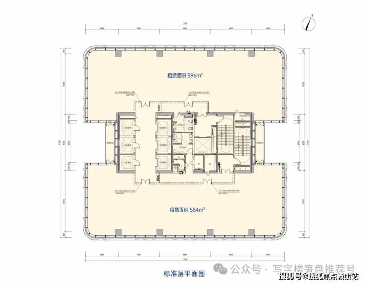 标准层一层2户,半层/整层起租,户型方正实用,全无内柱,满足企业舒适办公需求;