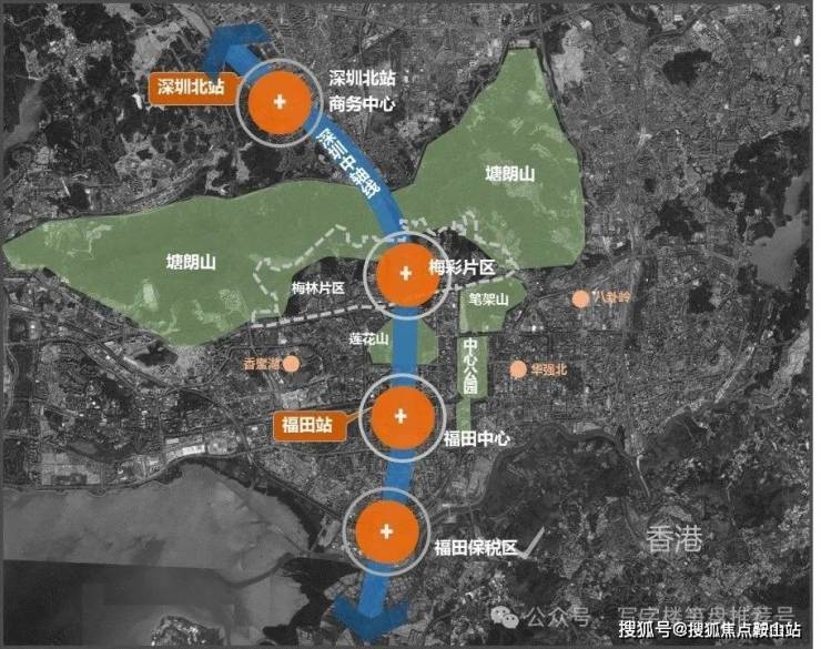 城际轨道:地铁接驳享福田、皇岗双口岸,联动福田站、深圳北站双高铁,链接深港对话世界。