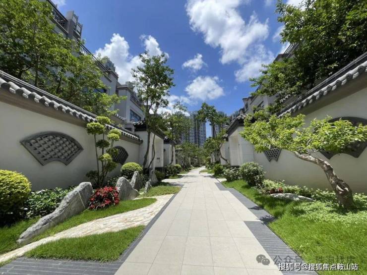 ✔一期社区园林分为横(东西向)纵(南北向)双景观轴设计,横向景观轴面积达2万㎡,将高层和别墅区进行分隔,保证互相的私密性,纵向景观轴贯穿别墅区,彰显了社区的庄重和仪式感。