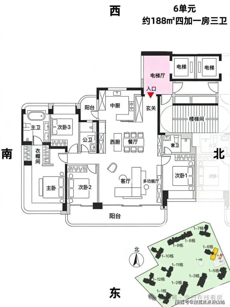 面积约:188㎡,总价区间约:2500万,户型:四房三卫