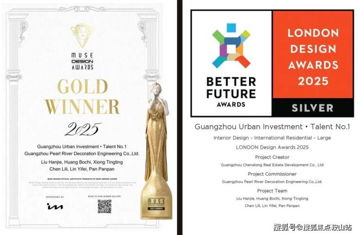 近日,国际设计界备受瞩目的2025年度美国MUSE缪斯设计奖和伦敦设计大奖评选结果正式揭晓。由 珠江装修 精心打造的豪宅标杆项目“广州城投·天赋壹号”,凭借对现代奢华居住美学的前瞻性诠释以及极致空间工艺的完美融合,在全球众多顶尖设计作品的激烈竞争中脱颖而出,一举斩获美国MUSE缪斯设计奖(MUSE Design Awards)金奖和伦敦设计大奖(LONDON Design Award)银奖。这是 珠江装修 在顶级豪宅设计领域收获的重要国际殊荣。