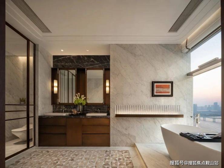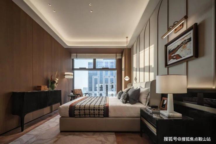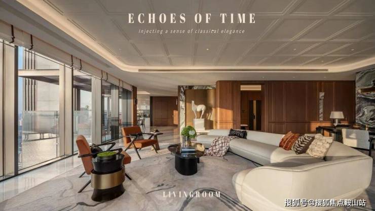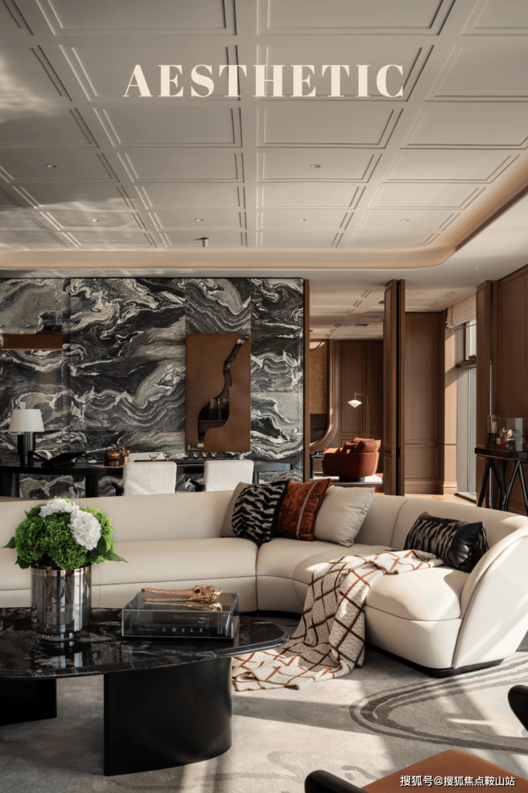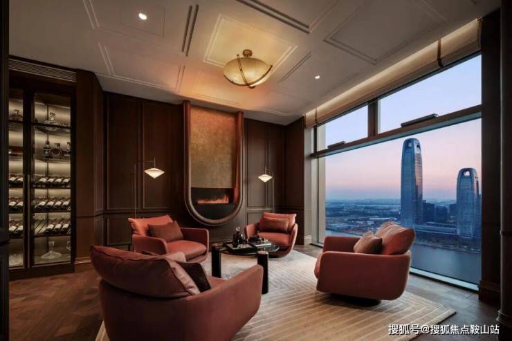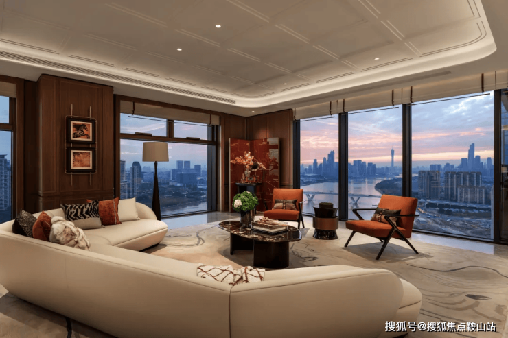 L形落地玻璃幕牆為沙發區提供了開闊的視野,享受一線江景的視覺盛宴,不僅增加了空間的通透感,也讓室內與室外的界限變得模糊,增強了室內空間與自然的聯繫 。