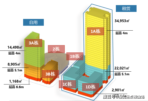 ② 层高5.1m创意办公产品(裙楼),总面积约22,021㎡