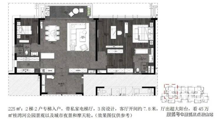 生态方面:河海湾三重极致资源,一线环景桂湾河16公里前海湾滨海生态公园带(建设中)4.3平方公里前海石公园。中集前海国际中心公寓 户型鉴赏