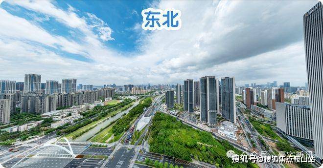 东北:楼下近距是公园绿地和双界河东段景观,远处看新安老城方向,整体远景城市景观为主。