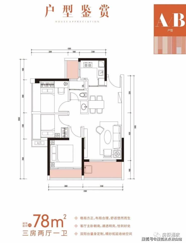✨户型赏析✨1️⃣建面约78㎡3房2厅1卫