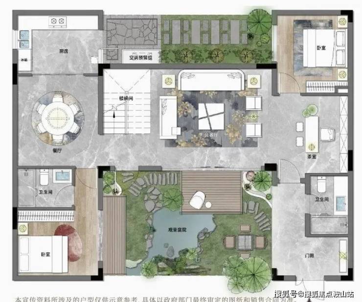 ②院赏四季:宅中有院、院中有屋,是中国人绵延至今的居住情结,“有天有地,有私人的露台和花园院落”,将四季美景嵌进庭院