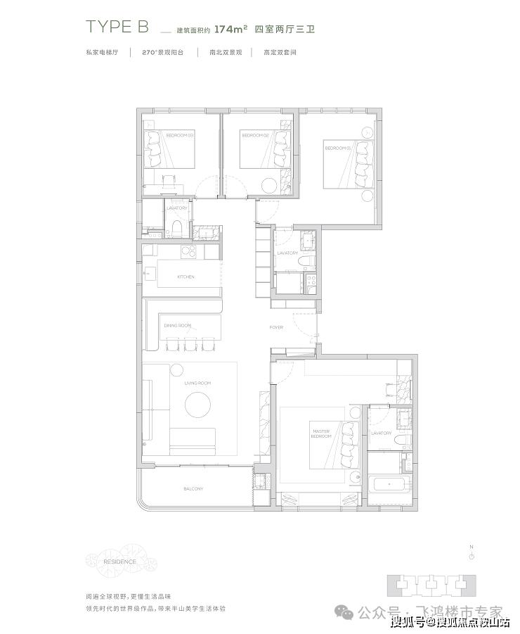缦云广州主打改善型住宅,户型面积范围在 140㎡至 325㎡之间。目前加推的建面约 190/230㎡“超级四叶草” 户型备受关注。它摒弃常规方厅设计,采用纵向超长中轴为庭,串联起厨房、餐厅、客厅和南北双阳台。