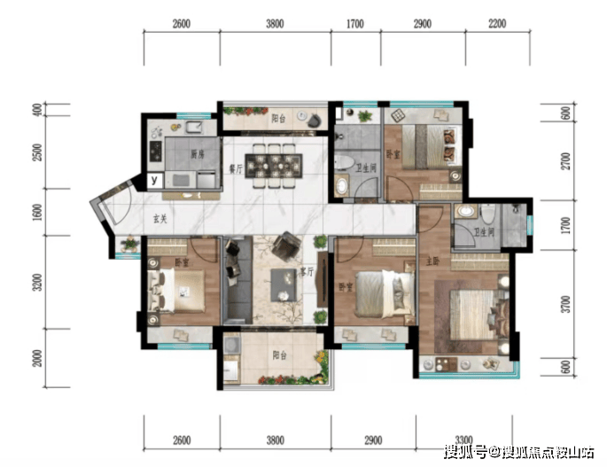 『南北通透双阳台 南向四开间』:118㎡户型 四房两厅两卫