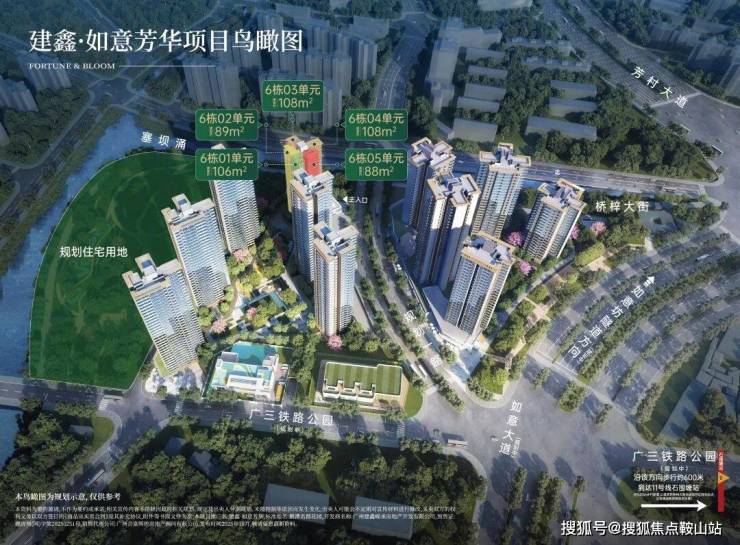 建鑫·如意芳华的"破圈"价值点,在于用实景资源回应了老城居住品质的质疑:项目东侧约3公里塞坝涌滨水长廊蜿蜒而过,未来将形成直达珠江的连续滨水步道系统;西侧以保留的广三铁路为基础改造的铁路文化公园,将工业记忆与现代生活完美结合。这种"左手滨水、右手公园"的独特格局,在广州老城项目中实属难得。