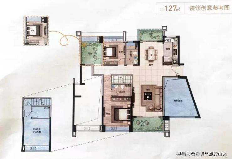 【平层127㎡户型】奇数楼层6米挑高,品质精装,赠送率高,独特复式设计,双套房居住体验;