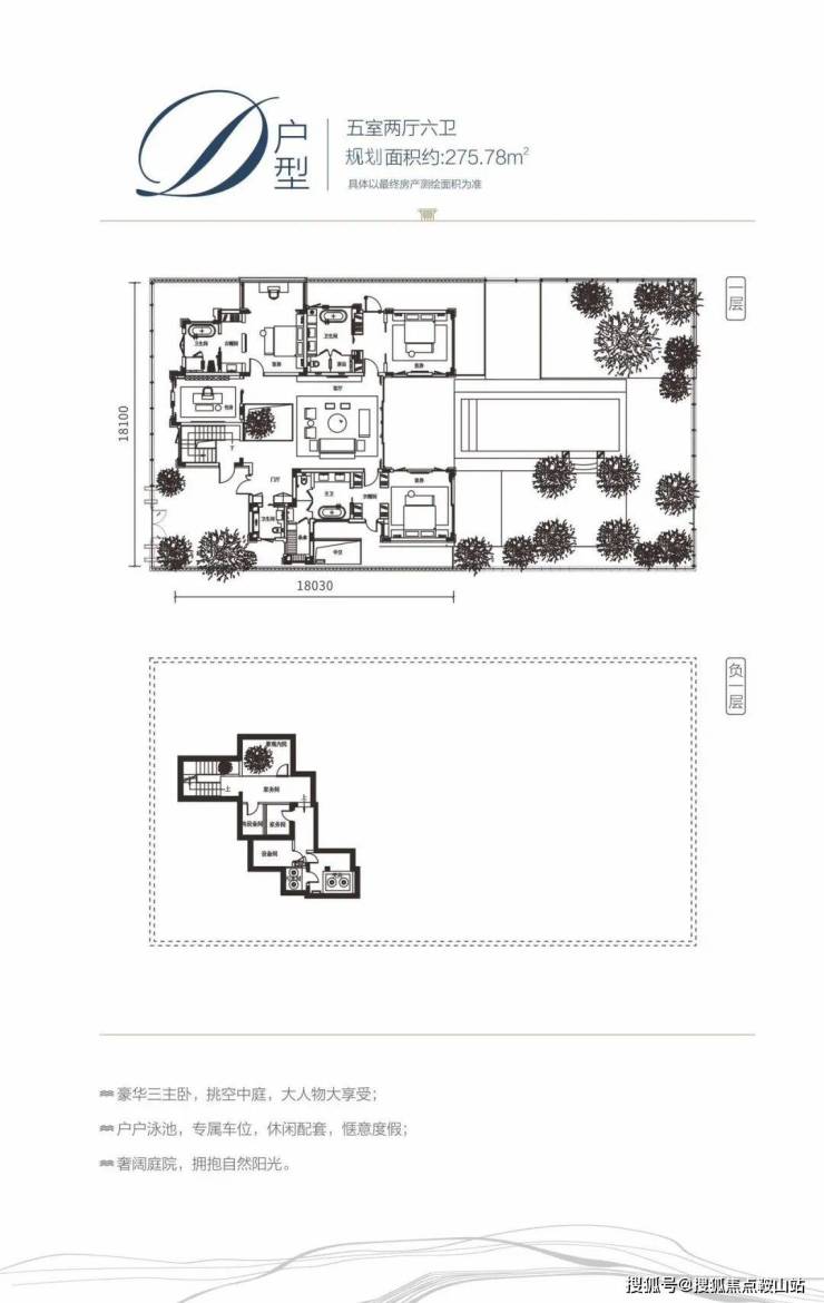 D户型:五室两厅六卫 / 规划面积约275㎡