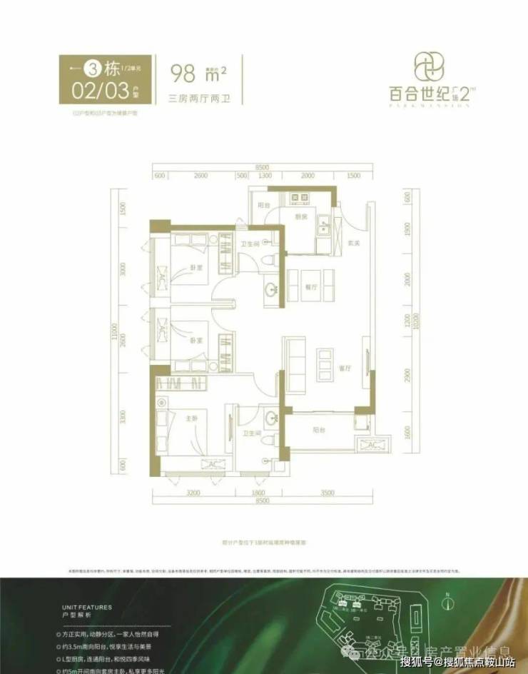 这次准备推售百合世纪广场二期(B-02地块),总占地面积约3.6万㎡,总建筑面积约27.03万㎡,计容建筑面积约19.38万㎡,容积率5.38,绿化率40%,共由3栋7个单元组成,总高是31-48层的住宅,其中1栋1单元住宅42F,1栋2单元住宅47F,2栋1单元住宅46F,2栋4/5单元住宅48F,3栋1/2单元住宅31F,另外2栋2单元公寓30F,2栋3单元商务办公楼22F,4栋是1所九班制幼儿园。