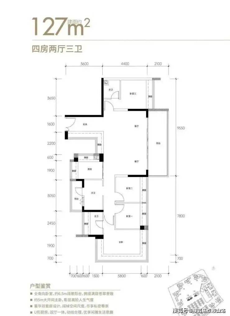 ■127㎡瞰山楼王4房3卫:南北通/全南6开间/一线山景无遮挡