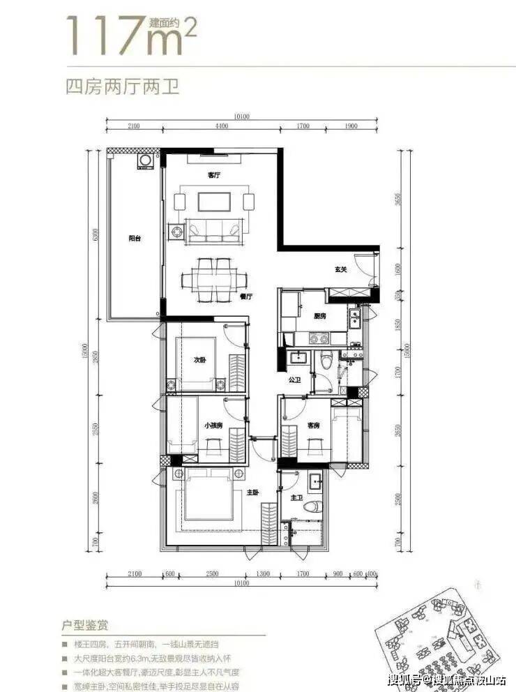 ■116㎡南北通4房2卫:116平享130平空间感/L型大阳台